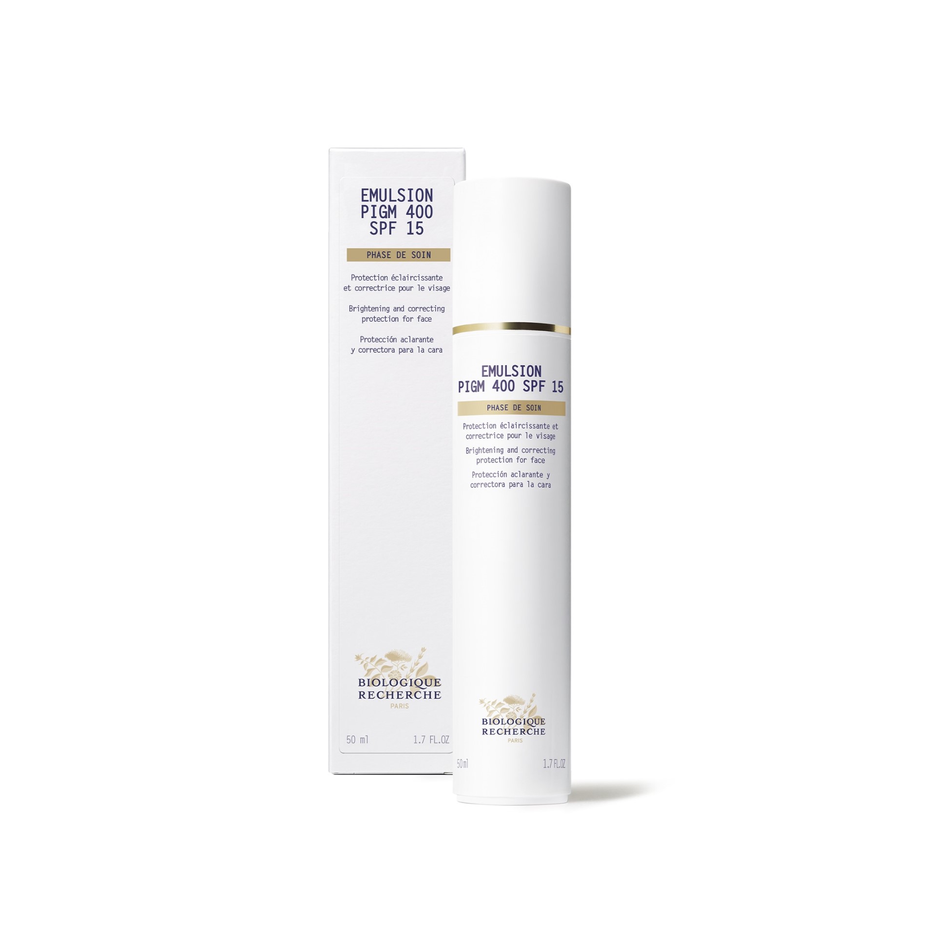Ως η απόλυτη φροντίδα λάμψης και προστασίας , το Emulsion PIGM 400 SPF 15 προλαμβάνει τις κηλίδες μελάγχρωσης και διορθώνει τις ήδη υπάρχουσες, ενώ παράλληλα προστατεύει το δέρμα από τις βλαβερές επιδράσεις του ήλιου και της ρύπανσης. Ενισχύει τη λάμψη, διατηρώντας παράλληλα τη φωτεινότητα του δέρματος. Συνιστάται για θαμπά και με δυσχρωμίες Skin Instants©.